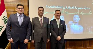 شارك الملحق الثقافي لجمهورية العراق في المملكة المتحدة، الأستاذ الدكتور قصي كمال الدين الأحمدي في مراسم الاحتفال التكريمي لعدد من نجوم المنتخب الوطني العراقي المتواجدين في المملكة المتحدة وهم كل من اللاعب علي الحمادي، واللاعب زيدان إقبال، ومدير إعلام المنتخب ...