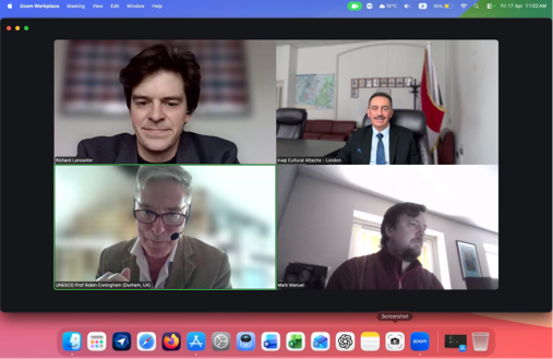 أجرى الأستاذ الدكتور قصي كمال الدين الأحمدي الملحق الثقافي لجمهورية العراق في المملكة المتحدة اجتماعًا إلكترونيًا مع ممثلي جامعة درم (Durham University) البريطانية حيث تم بحث سبل التعاون المشترك في عدة مجالات أكاديمية وثقافية.